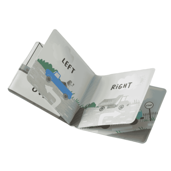 Perfect for making bath time fun yet educational for children, Trucking Along Bath Book is an exciting book which encourages learning about directions!