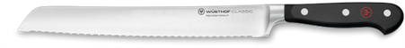 WÜSTHOF's precise, double-serrated edge makes a clear difference with this bread knife: in contrast with a single-serrated edge, this knife has serrations within the serrations, meaning that it remains sharp for longer, requires less pressure and is suitable for very precise, smooth cuts.