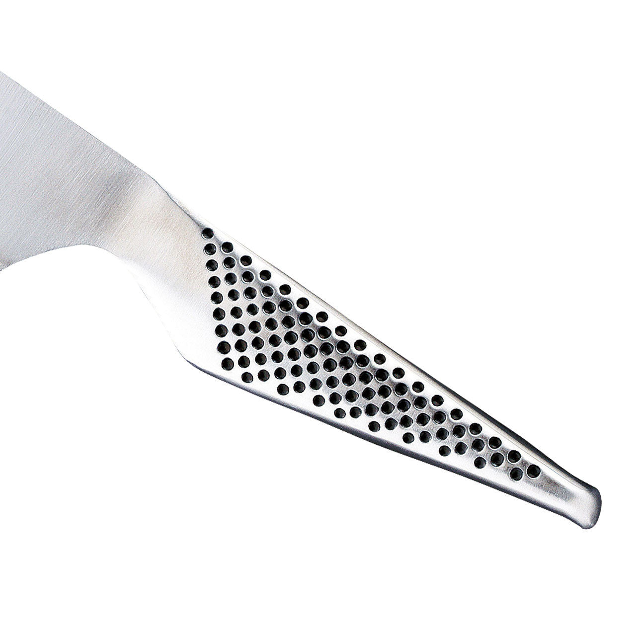 The GS-3 is made from CROMOVA 18 stainless steel, specially developed by GLOBAL as it holds a razor-sharp edge and resists rust, stains and corrosion. Ice tempered and hardened to Rockwell C56-58, each knife is carefully weighted by filling the handles with sand to achieve the optimum weight and perfect balance. Other unique features include its smooth contours and seamless construction which eliminates food and dirt traps offering the ultimate in safety and hygiene. The acute 15-degree angle cutting edge provides unsurpassed performance and superior edge retention.