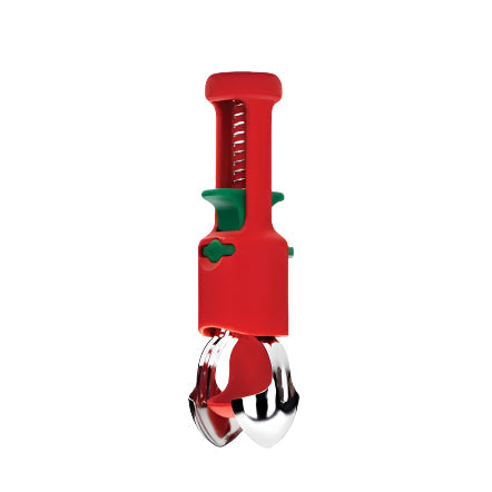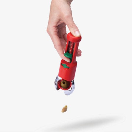 Hullapit is a 3-in-1 fruit tool that hulls strawberries, pits cherries and olives, and catches their stones