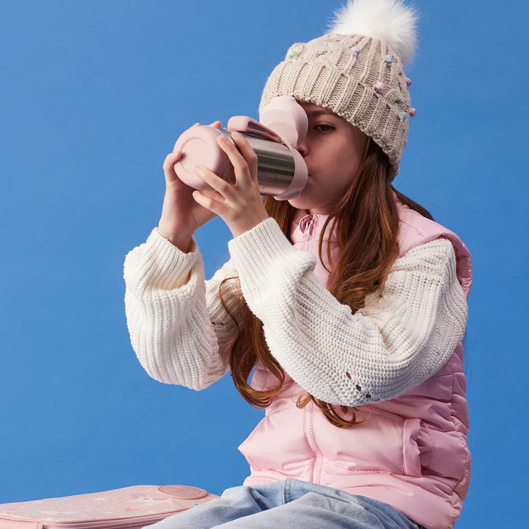The front press button opening can be used with one hand to help with those big schoolyard thirsts and the integrated carry handle means it’s always on hand.