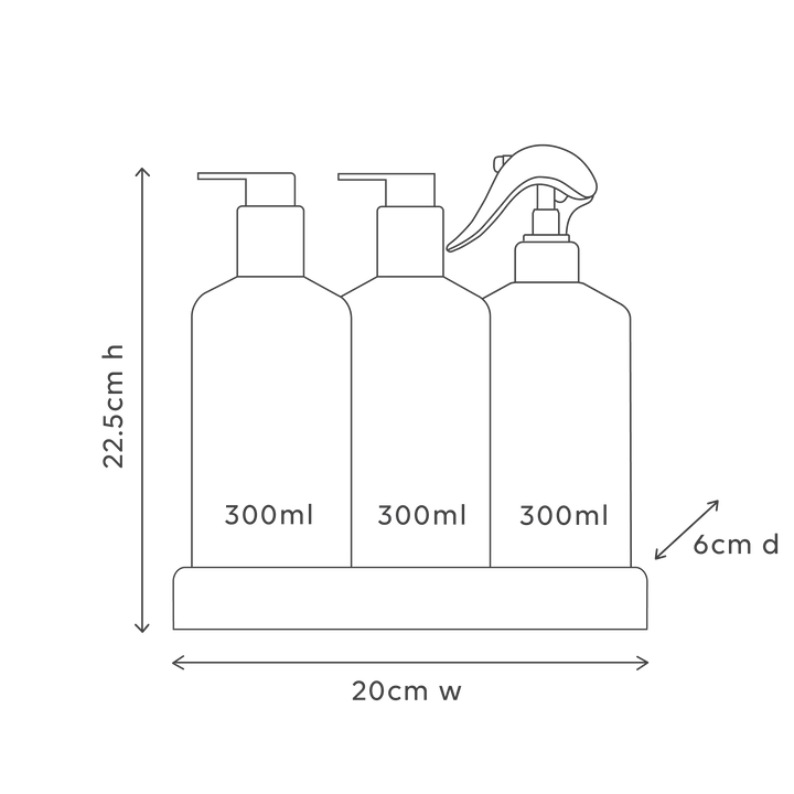 Introducing our Kitchen Trio - the ultimate solution for your kitchen cleaning needs. This set includes our Dishwashing Liquid, Bench Spray, and Hand Wash, all conveniently nestled within a beautifully designed custom tray.