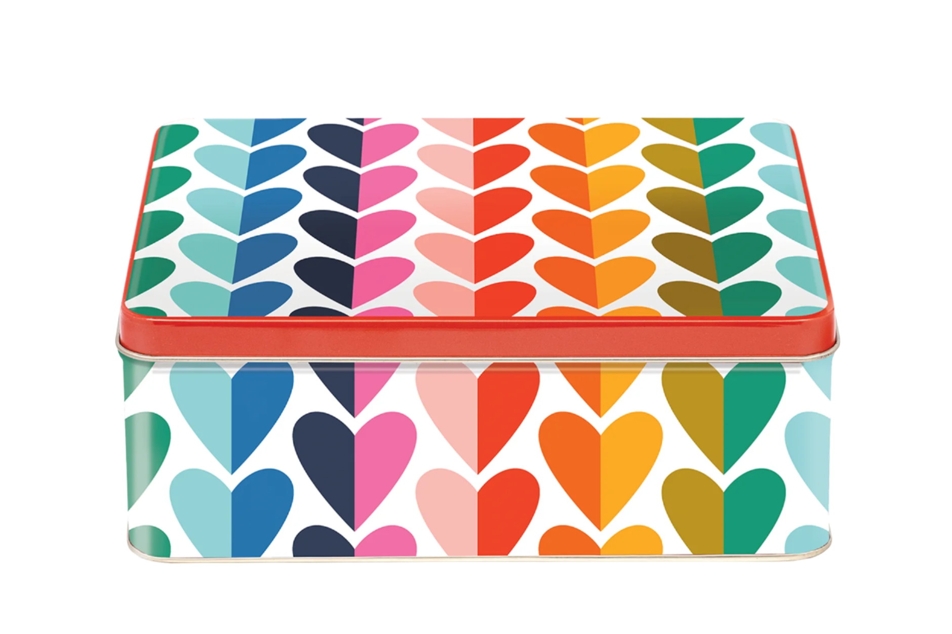 Add a touch of love to your kitchen with the Heart Design Biscuit Tin by Kate Rhees. With its modern and colourful design, this tin is sure to make your heart skip a beat every time it's in use. Perfect for any biscuit lover (or just someone who loves love)!