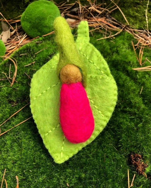 This gorgeous gnome baby comes with its very own leaf that it can be taken in and out of.