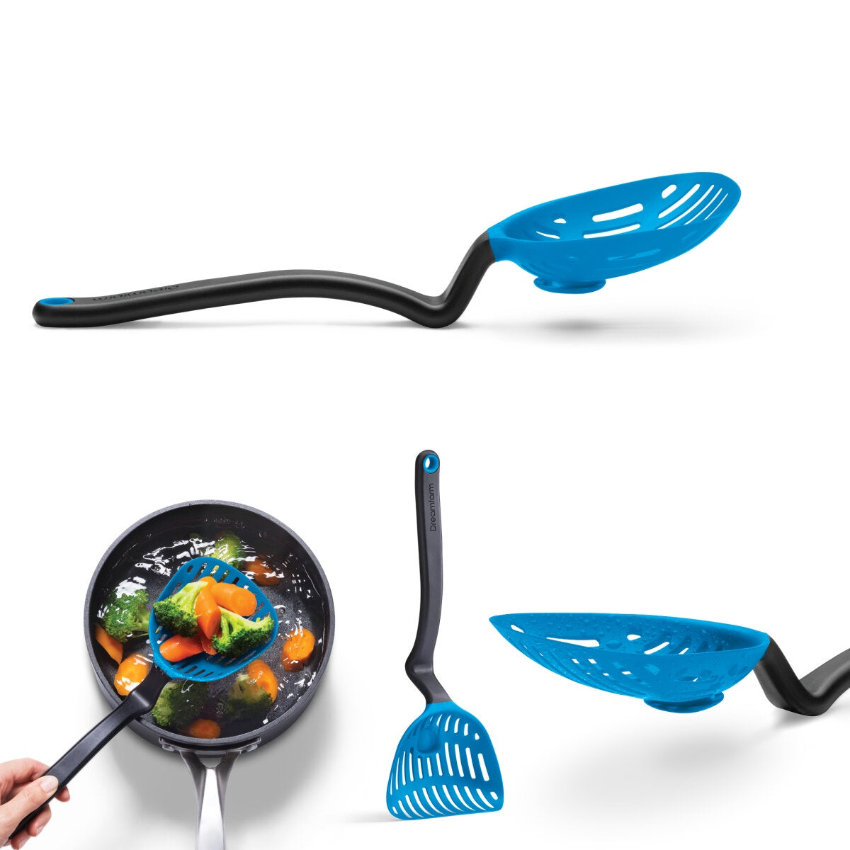 Introducing Lestrain: a scoop strainer that catches its own drips and sits up off your counter.