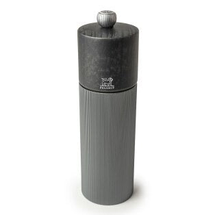 This Carbon Line manual salt mill from Peugeot flawlessly combines natural wood in a graphite finish and strong aluminum. The shiny metal button adorned with the Peugeot lion head is used to adjust the salt grind setting. The more the button is screwed, the finer the grind.