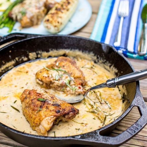 It's compact design with two loop-style handles is easy to store and is perfect for the stovetop (including induction), oven, on the grill or over the campfire. The loop-handle design fits nicely in the oven and looks even better on the table.