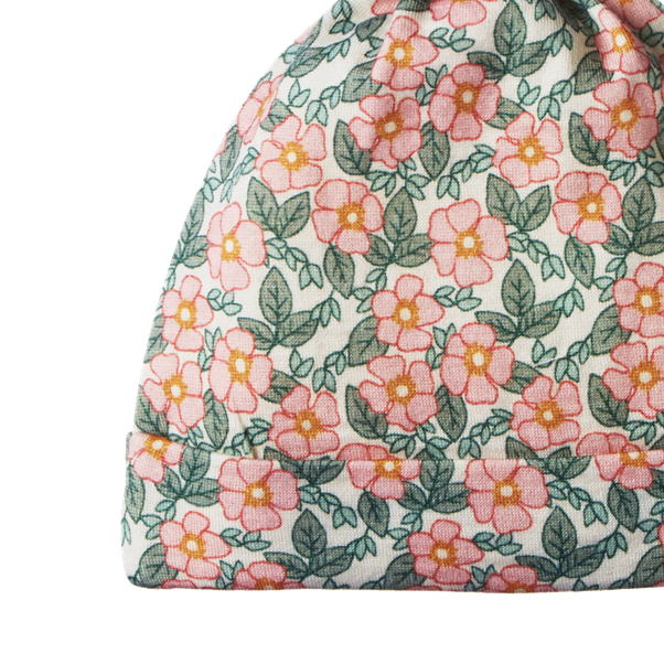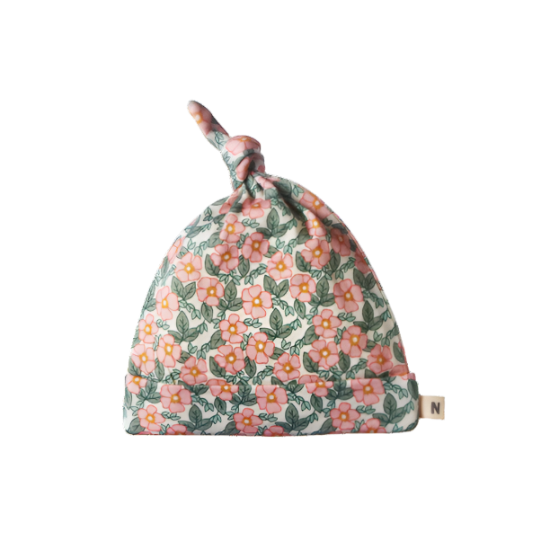 The knotted beanie is perfect for baby in the cooler months and features an adjustable knot to ensure the perfect fit and avoid heat loss. This beautiful fabric has a nostalgic quality and is super soft and stretchy.