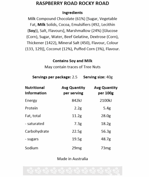 Milk choc with clouds of marshmallows, coconut & crunchy puffed corn, smothered in creamy raspberry milk choc.