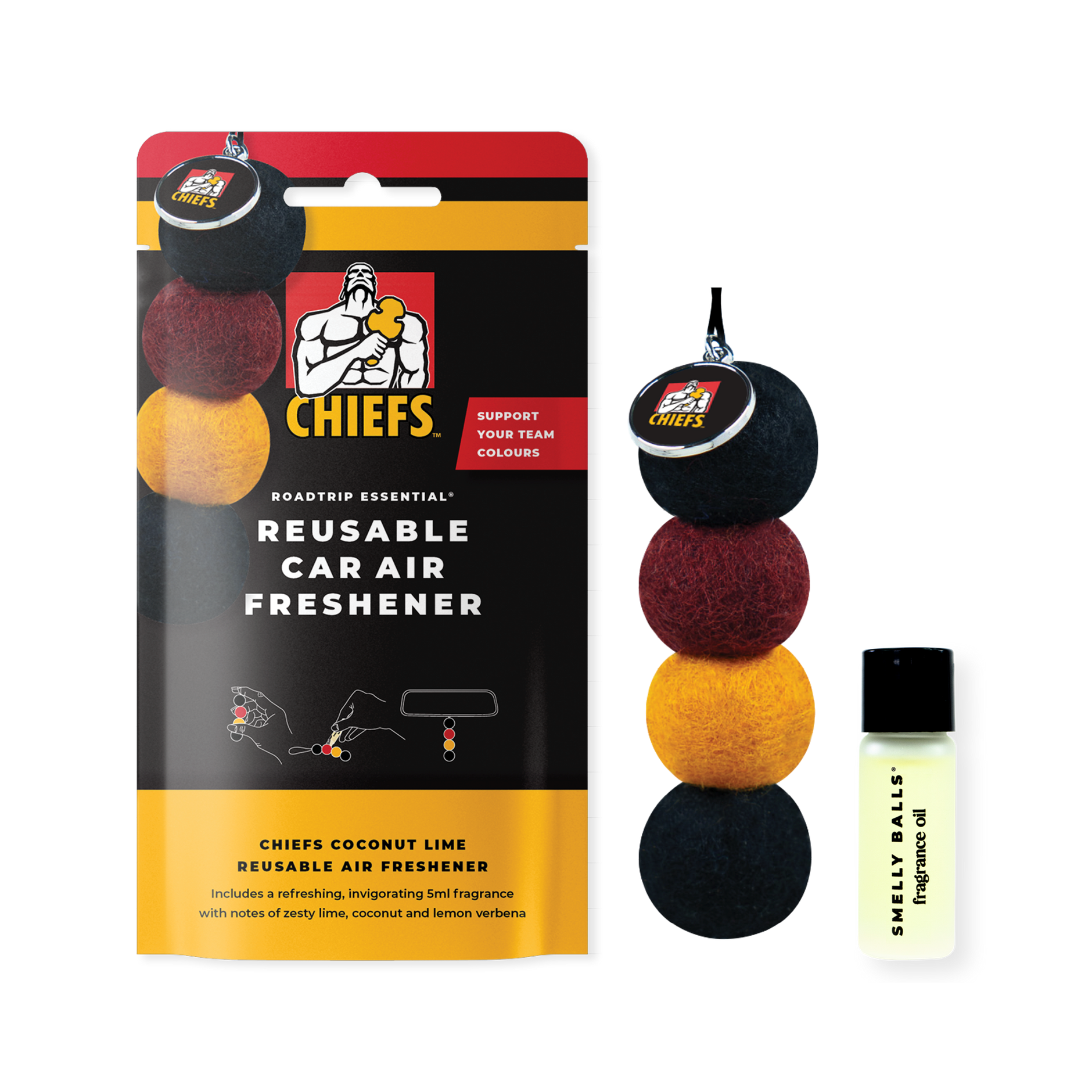 Support your team with the ultimate Road Trip Essential: Smelly Balls reusable car air freshener!