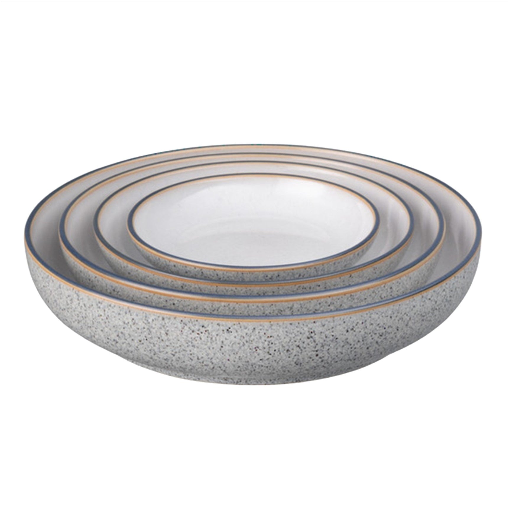 A set of four nesting bowls from Denby's Studio Grey range of tableware, known for its